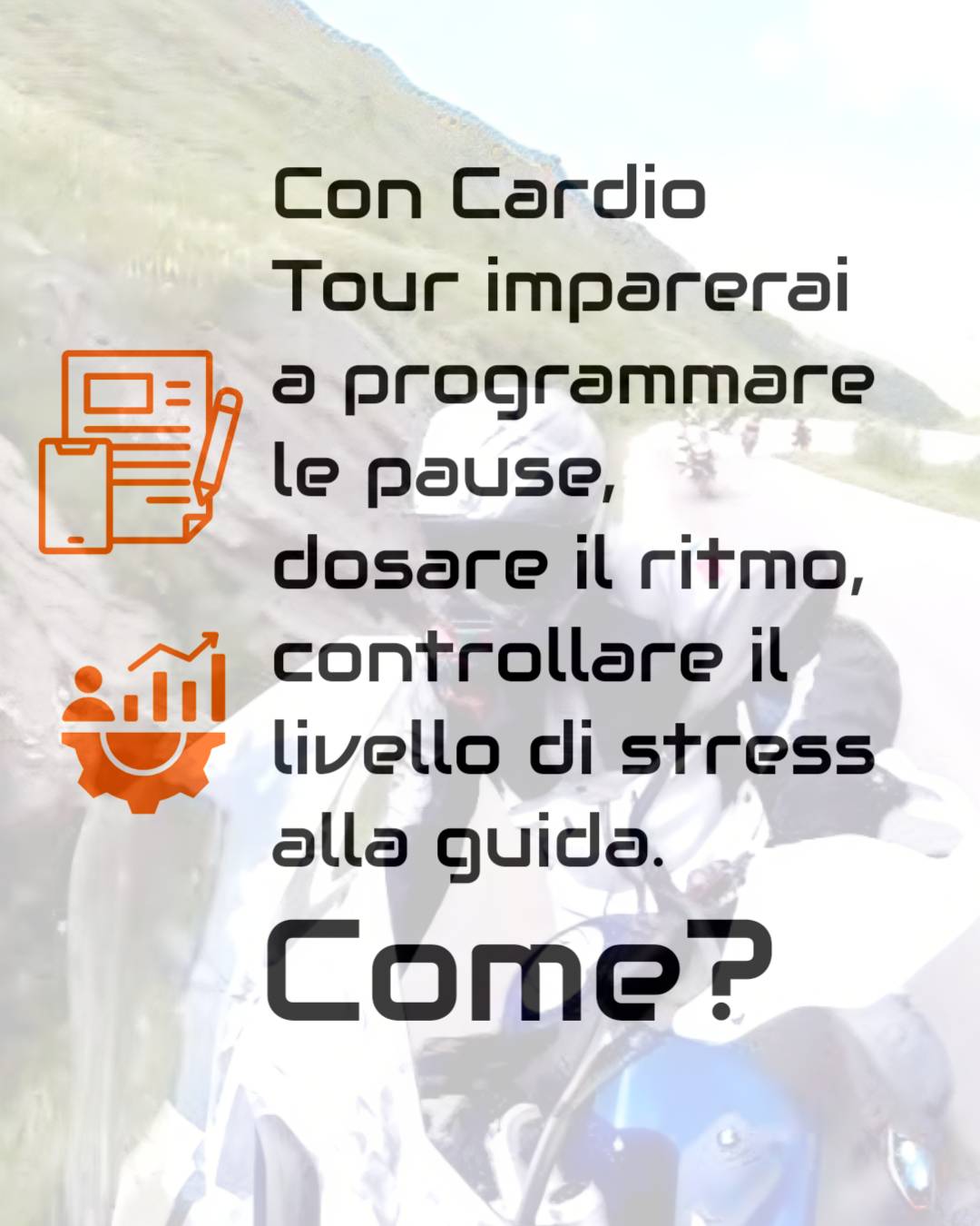L'obbiettivo primario del tour didattico è sensibilizzare il motociclista all'utilizzo del cardio monitoraggio individuale per mantenere i livelli di attenzione, stress, affaticamento fisico nei limiti accettabili necessari ad affrontare in sicurezza un lungo viaggio.