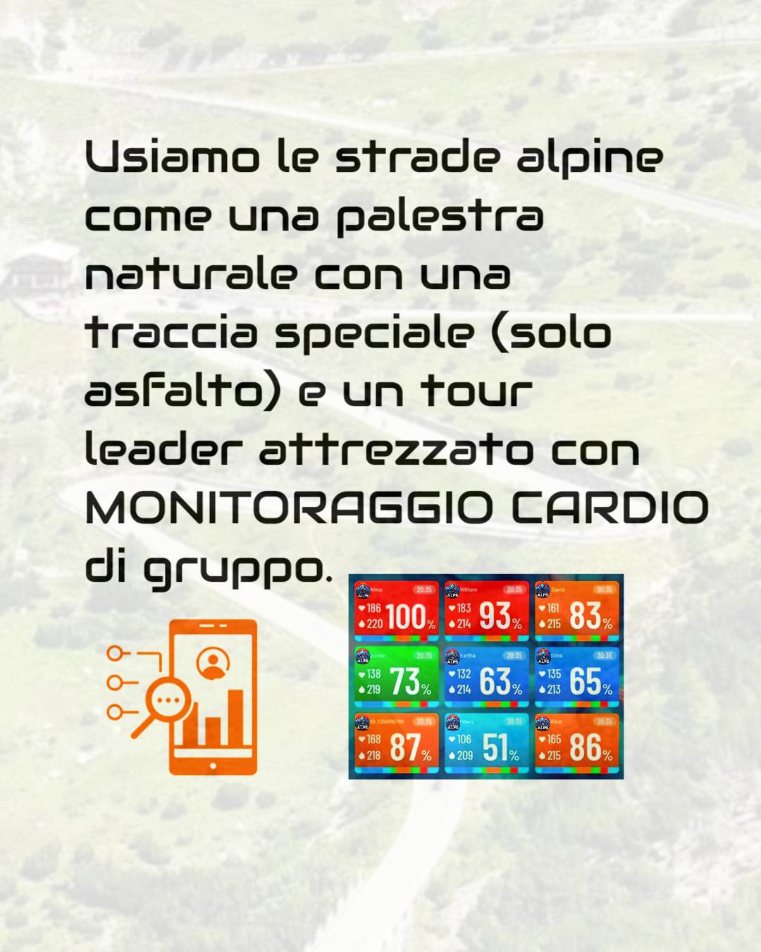 Due Tour Leader al seguito del gruppo con attrezzatura di monitoraggio cardio collettivo on board e real time.