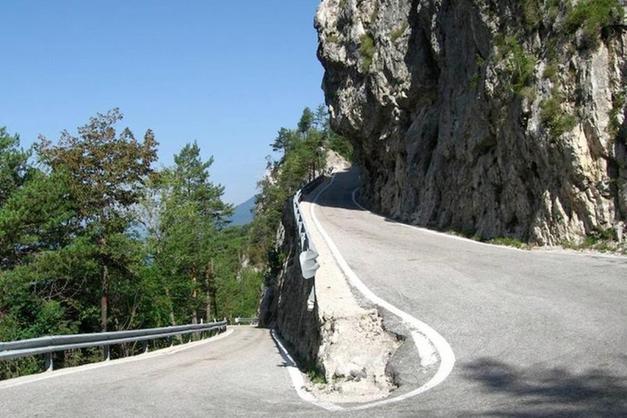 Il serpentone di curve continua fino a Folgaria, con una breve deviazione per una sosta alla Base militare Tuono, luogo carico di storia e atmosfera. Poi di nuovo in sella, verso Calliano e Castellano, fino a rivedere Arco di Trento e rientrare infine a Riva del Garda.