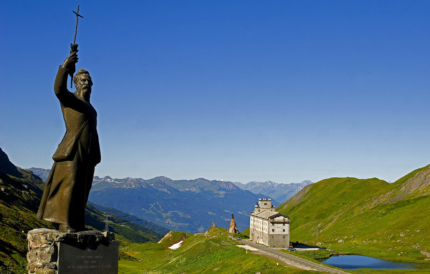 Proseguiremo su una delle strade più scenografiche d'Europa: il Piccolo San Bernardo. Oltrepassato il vecchio confine di Stato, saluteremo la statua di San Bernardo, entrando in territorio francese.